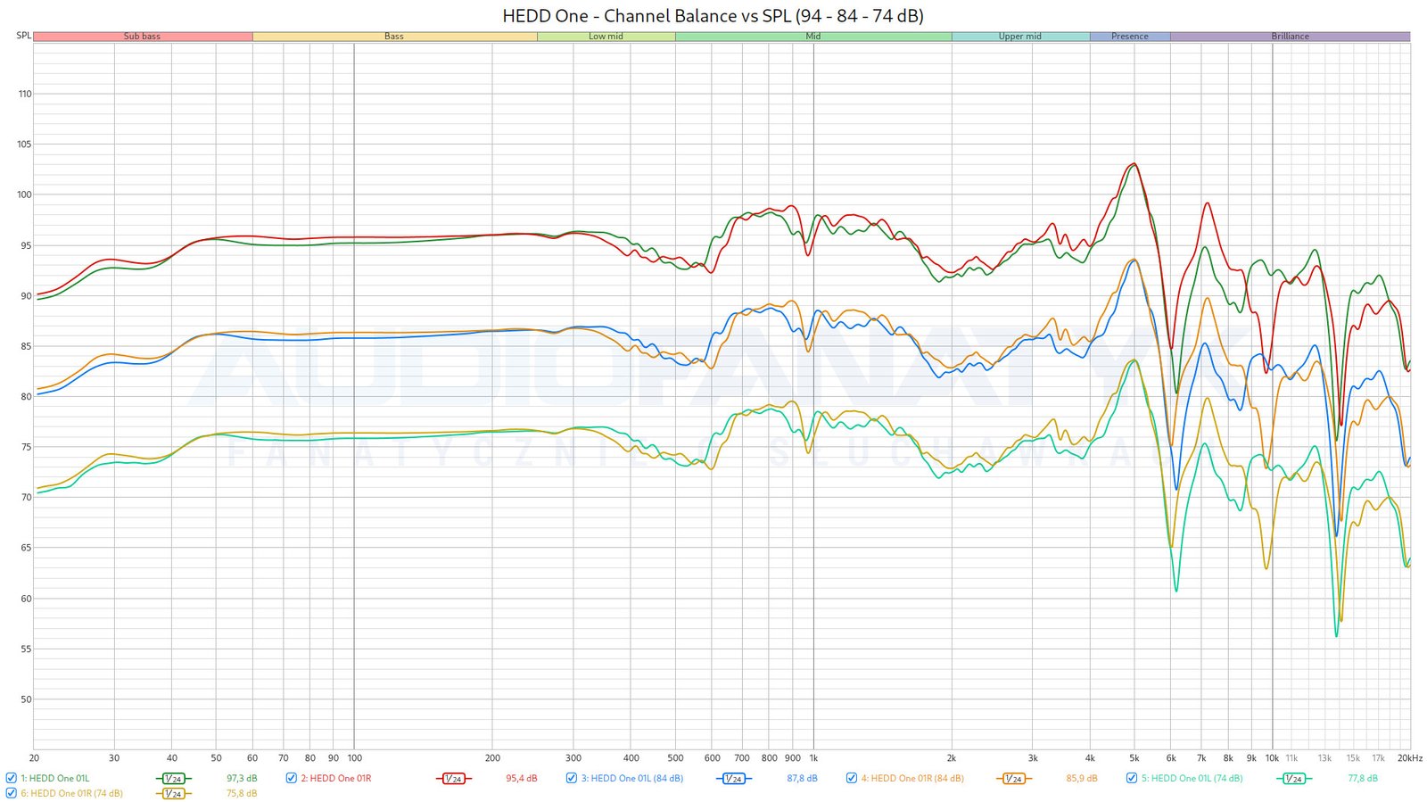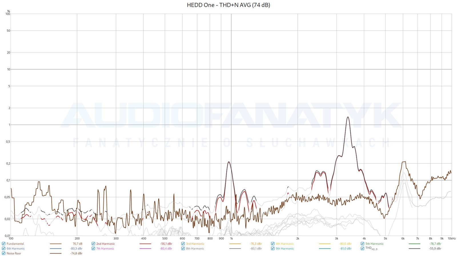 W tym wypadku słuchawki te – zwłaszcza przy większej głośności – po prostu „słychać”. Oznacza to, że ich zniekształcenia wyraźnie zaczną dobijać się do naszych uszu, dodatkowo pogarszając nasz słuch w dłuższej perspektywie (za wysoki SPL). Dlatego dla dokładniejszego prześledzenia ich zachowania, słuchawki sprawdziłem też przy niższych natężeniach. Ale nawet przy 74 dB w 3,4 kHz uzyskałem 1,4% THD, czyli nadal ponad pułapem 1%. Dlatego HEDD One najlepiej jest użytkować raczej przy niskich głośnościach.