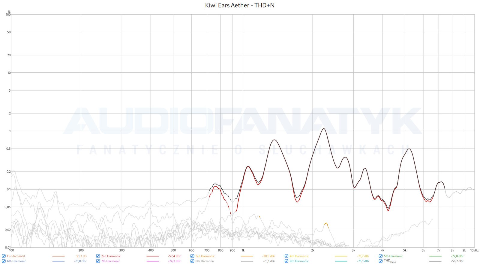 Mamy więc tendencję do sopranu „lampowego”, ale to właśnie ona paradoksalnie może stać za przyjemnym, subiektywnym odbiorem tych słuchawek. Niesłyszalna trzecia harmoniczna na pewno nie będzie nam tu przeszkadzać i wprowadzać zamieszania to takiego stanu rzeczy. Nie biłbym tu jednak na alarm, ponieważ nie widzę problemów z rezonansami czy ogólnie jakością. Być może zamknięta konstrukcja jednak dobrze służy Kiwi Ears Aether. Co więcej, w żadnym razie nie ma mowy o rezonowaniu w stylu wyższego Hifimana. Producent obrał więc nieco inny kierunek i zamiast słyszenia różnego rodzaju rzeczy dodatkowych w nagraniach, skupił się tylko na drugiej harmonicznej.