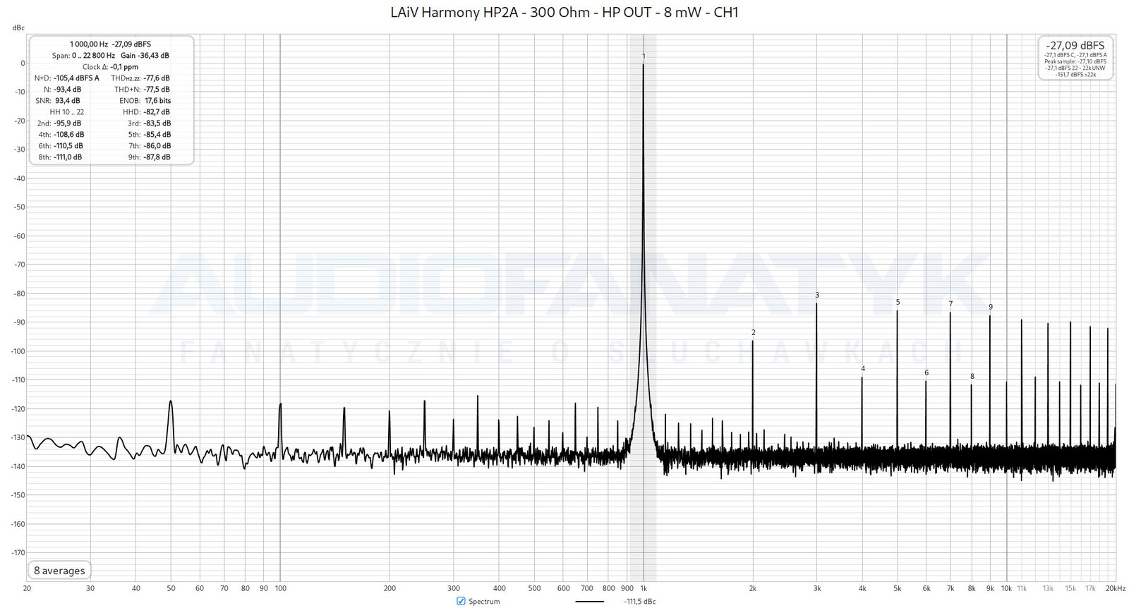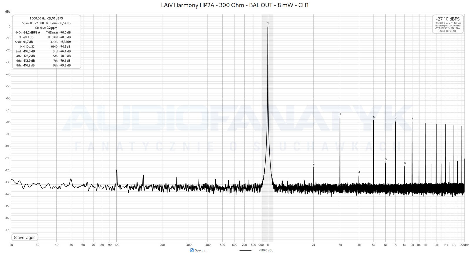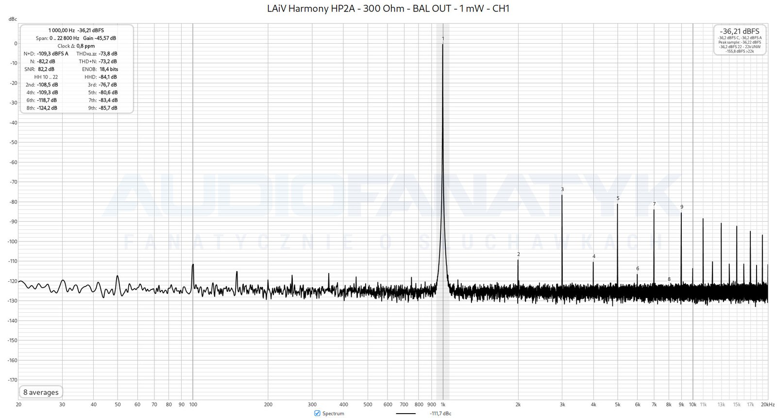 LAiV Harmony HP2A chyba w ogóle jeszcze nikt nie zmierzył poza The Headphone Show. Toteż mojej skromnej osobie przypadł zaszczyt bycia drugim na świecie. Nota bene z takimi samymi wynikami, jakie wyszły na ichnim Audio Precision.