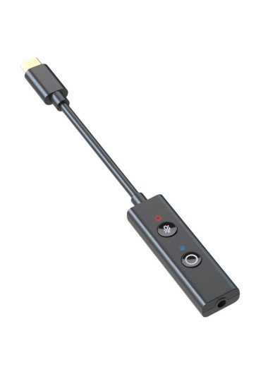 Mamy tutaj ultra-przenośną konstrukcję USB-C w standardzie OTG na podwójnym DACu Cirrus Logic. Do tego wyjście zarówno single-ended jak i zbalansowane. Na boku urządzenia znalazły się przyciski sterowania głośnością, zaś na froncie umieszczono diodę LED wskazującą stan pracy i częstotliwość próbkowania. Ta może osiągnąć nawet 32 bit / 384 kHz w trybie PCM. Na dokładkę sprzęt ma możliwość odtwarzania plików DSD do trybu DSD256 włącznie. Jakby tego było mało, sprzęt oferuje pełne 16 bit rozdzielczości. Przekracza tym samym możliwości wszystkich słuchawek, jakie byśmy chcieli pod niego podłączyć. Po balansie uzyskamy dla 300 Ohm teoretycznie 40 mW mocy, co w zupełności wystarczy naprawdę większości słuchawek na rynku.