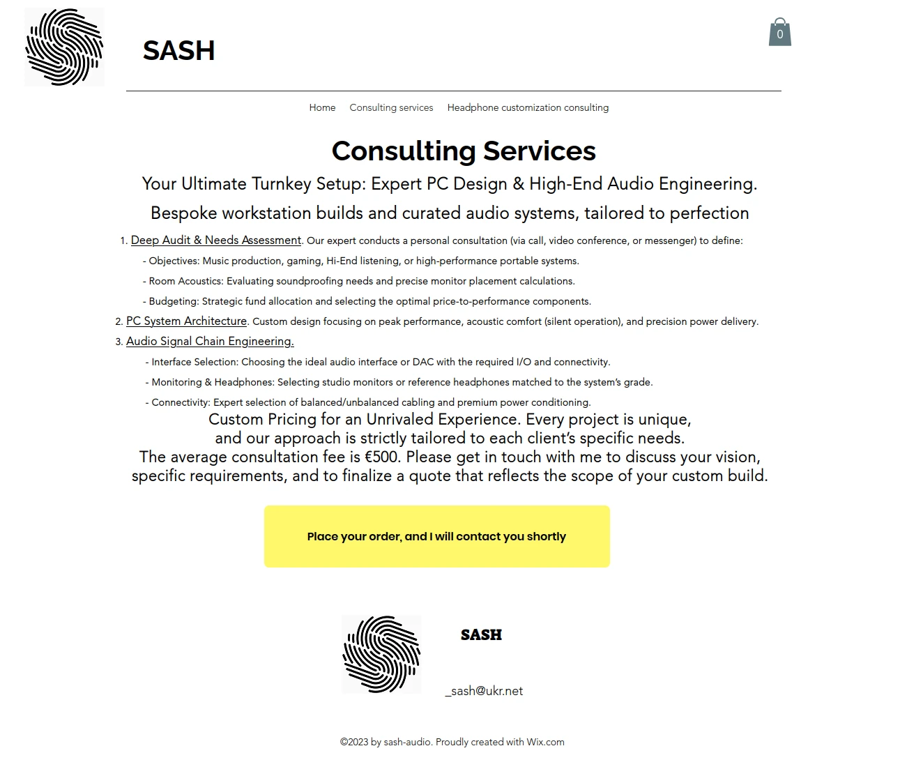 Dosłownie tego samego dnia, którego chciałem pierwotnie opublikować swoją recenzję, nastąpiła zaskakująca zmiana. Sash Audio przebudował na szybko swoją stronę (opartą na platformie Wix, co może być tu znaczące) i teraz oferuje nie tyle słuchawki, co usługi konsultacyjne. Szkoda, że nie zrobiłem zrzutu ekranu, ale skopiowałem sobie przynajmniej dane techniczne, które również uległy skróceniu.