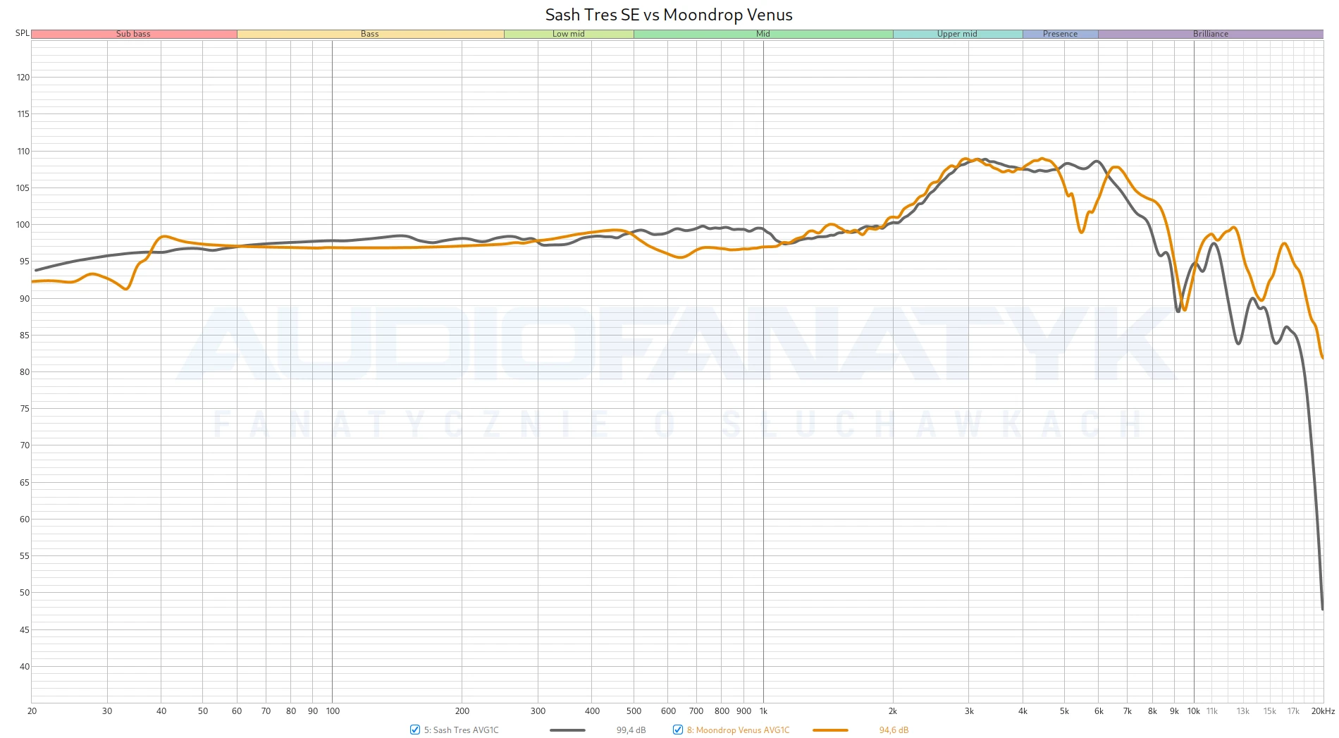 Tu pojawia się charakterystyczny rys brzmienia Tres SE – szerokie uwypuklenie w zakresie 2-7 kHz. Nadaje ono brzmieniu blasku i detaliczności, przypominając nieco strojenie współczesnych Hifimanów, ale z zachowaniem ducha dźwięku typowego dla Audeze.