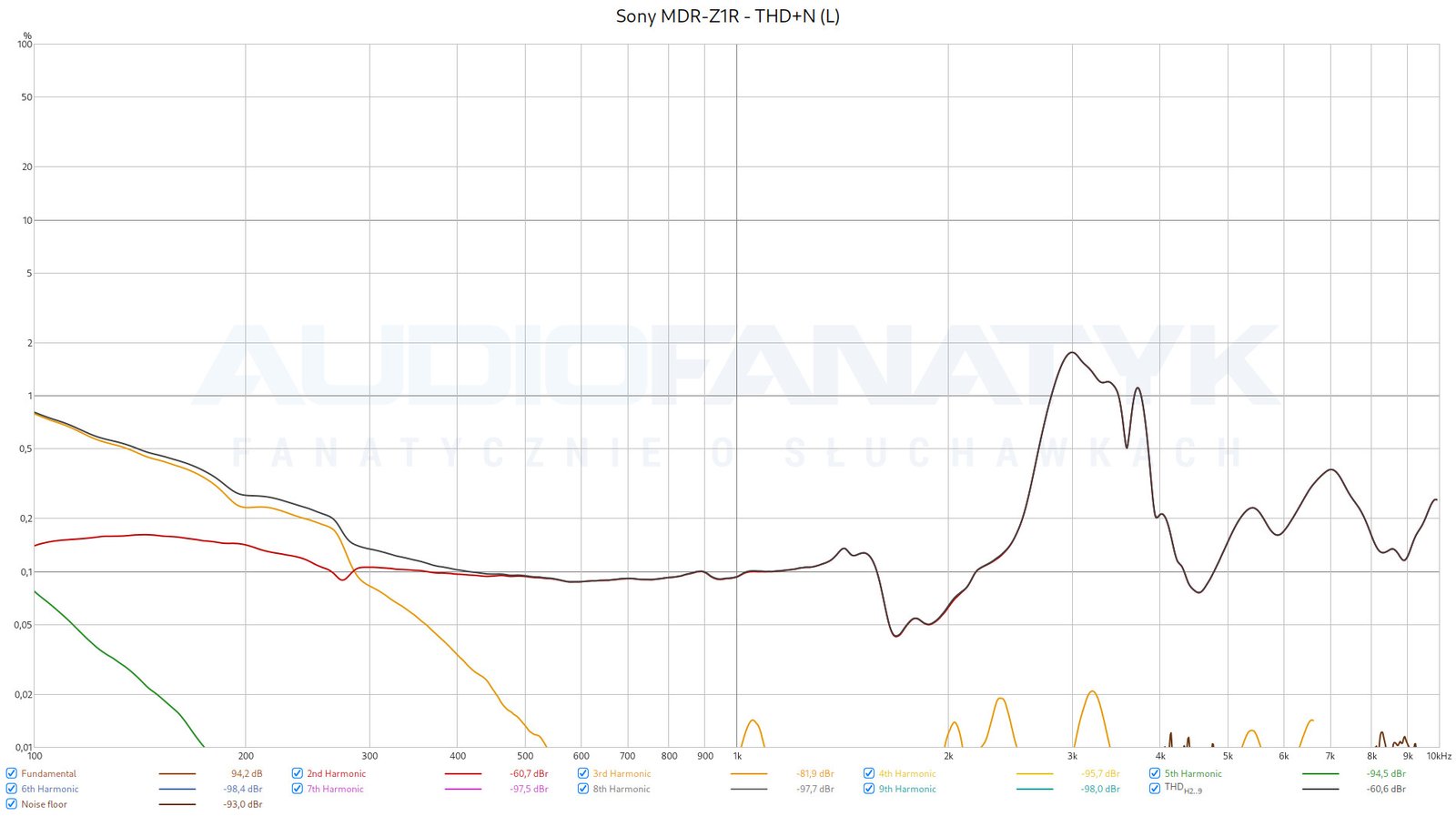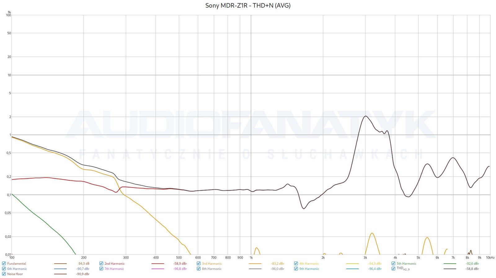 Zaczynając od samego dołu, mamy bardzo przyjemny ilościowo bas z dobrym zejściem. Nie jest przepotężny, ale słuchawki mają w sobie taki autorytarny sznyt, który bardzo mi się przyznam podoba. Zaskakująco, ale nie jest to najczystszy bas, z jakim miałem styczność. Gdy już byłem gotów stwierdzić, że może uszy płatają mi figle, że to takie moje wrażenie tylko, zagadkę rozwiązały pomiary THD (o nich za moment). Rzeczywiście, słuchawki mają „lampowy” bas, całując się już na progu 100 Hz z magiczną granicą lampowego 1% THD. W muzyce rzadko daje to o sobie znać i pod tym względem – jeśli nikt Wam o tym nie powie, tak jak ja w tym momencie – trudno będzie to usłyszeć.