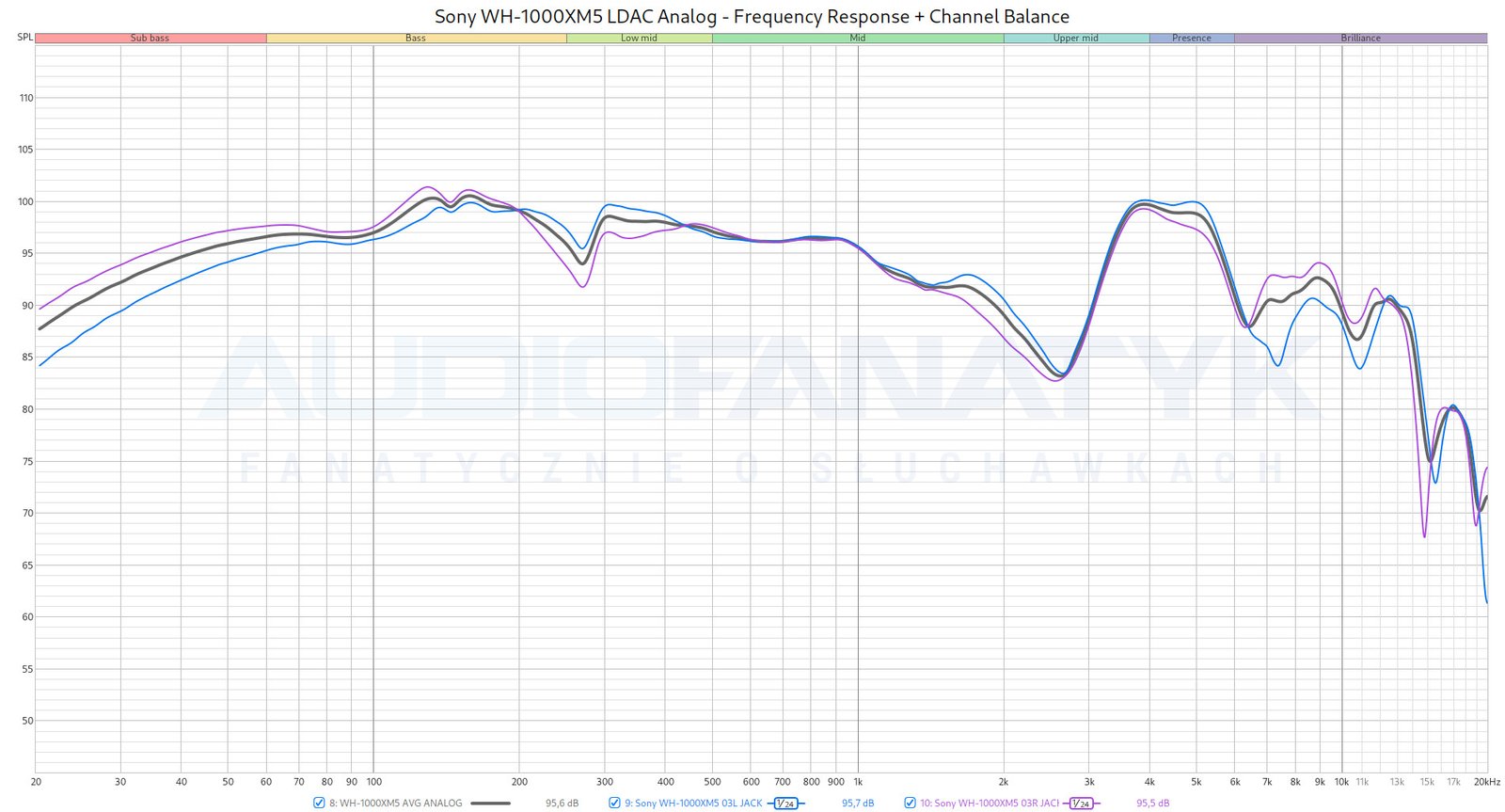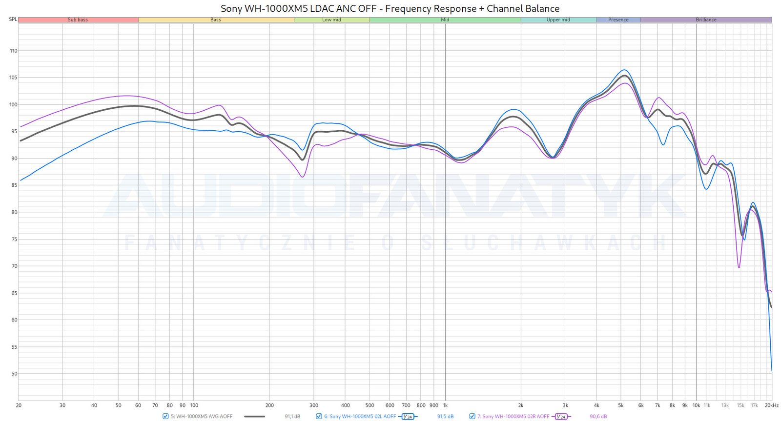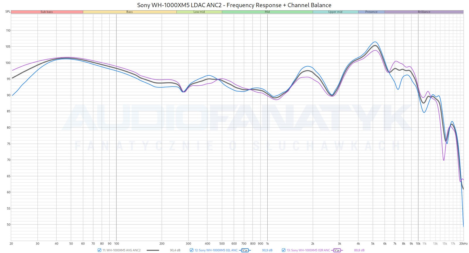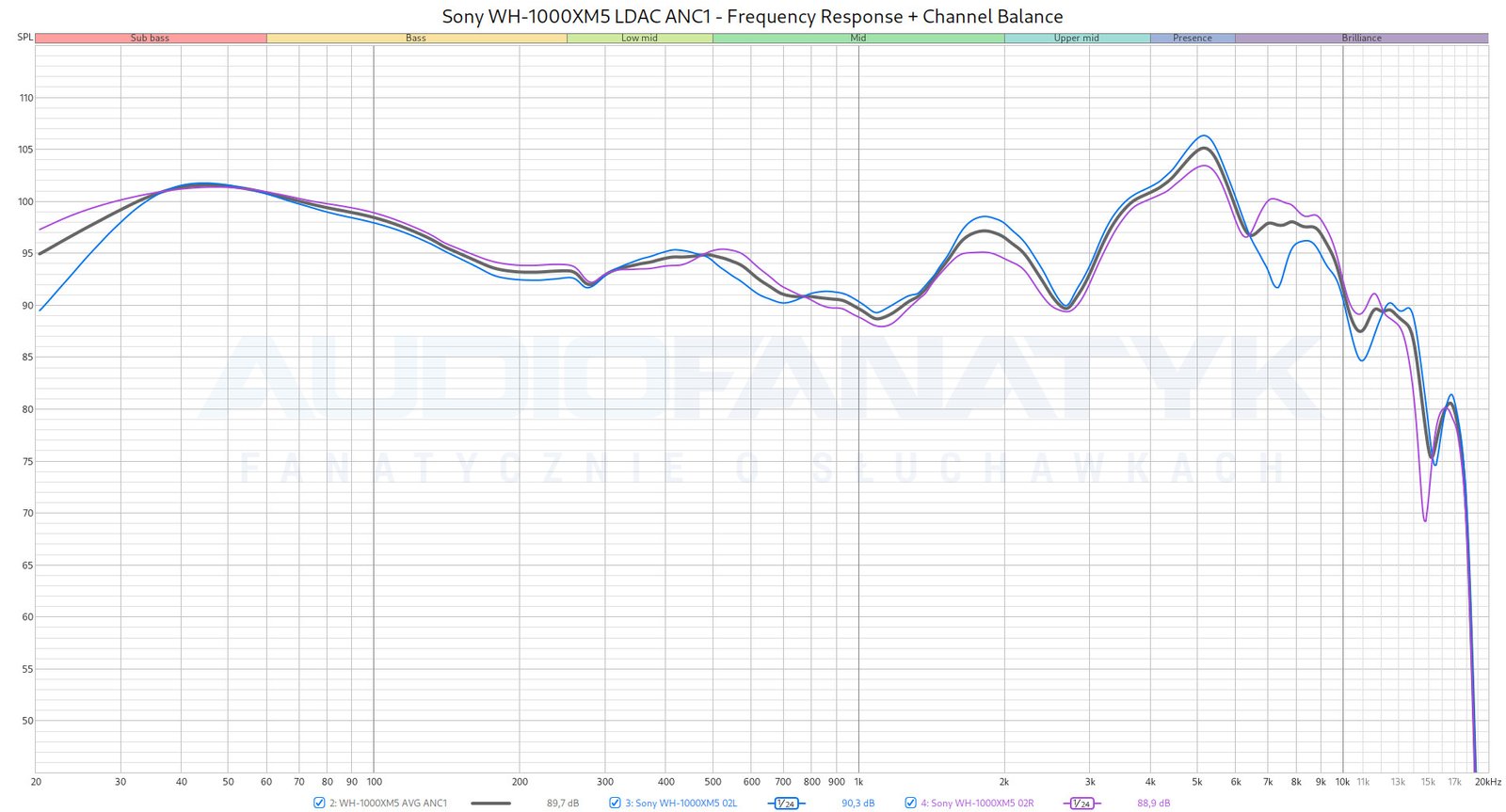 Z tym co pisałem wyżej wiąże się dosyć interesująca obserwacja. Otóż Sony WH-1000XM5 mają nie tylko equalizację sprzętową zakodowaną w module Bluetooth, ale też jakby korekcję rozjazdu kanałów. Wygląda to tak, jakby korekcje elektroniką pokładową miały być w XM5 lekiem na całe zło i parowanie przetworników.