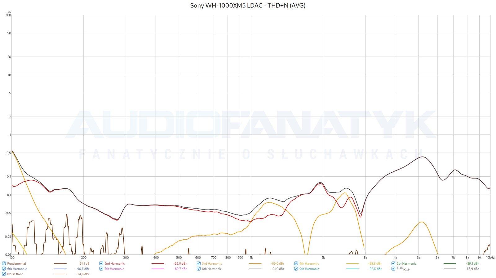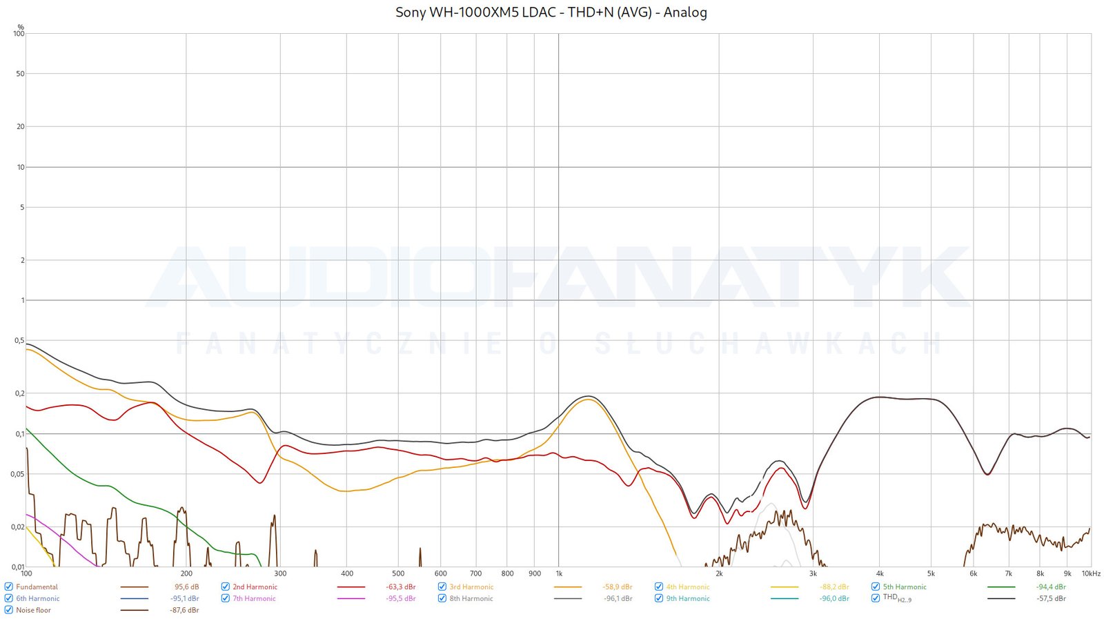 - Uśrednione THD+N dla trybu bezprzewodowego