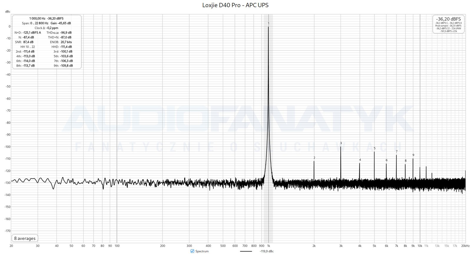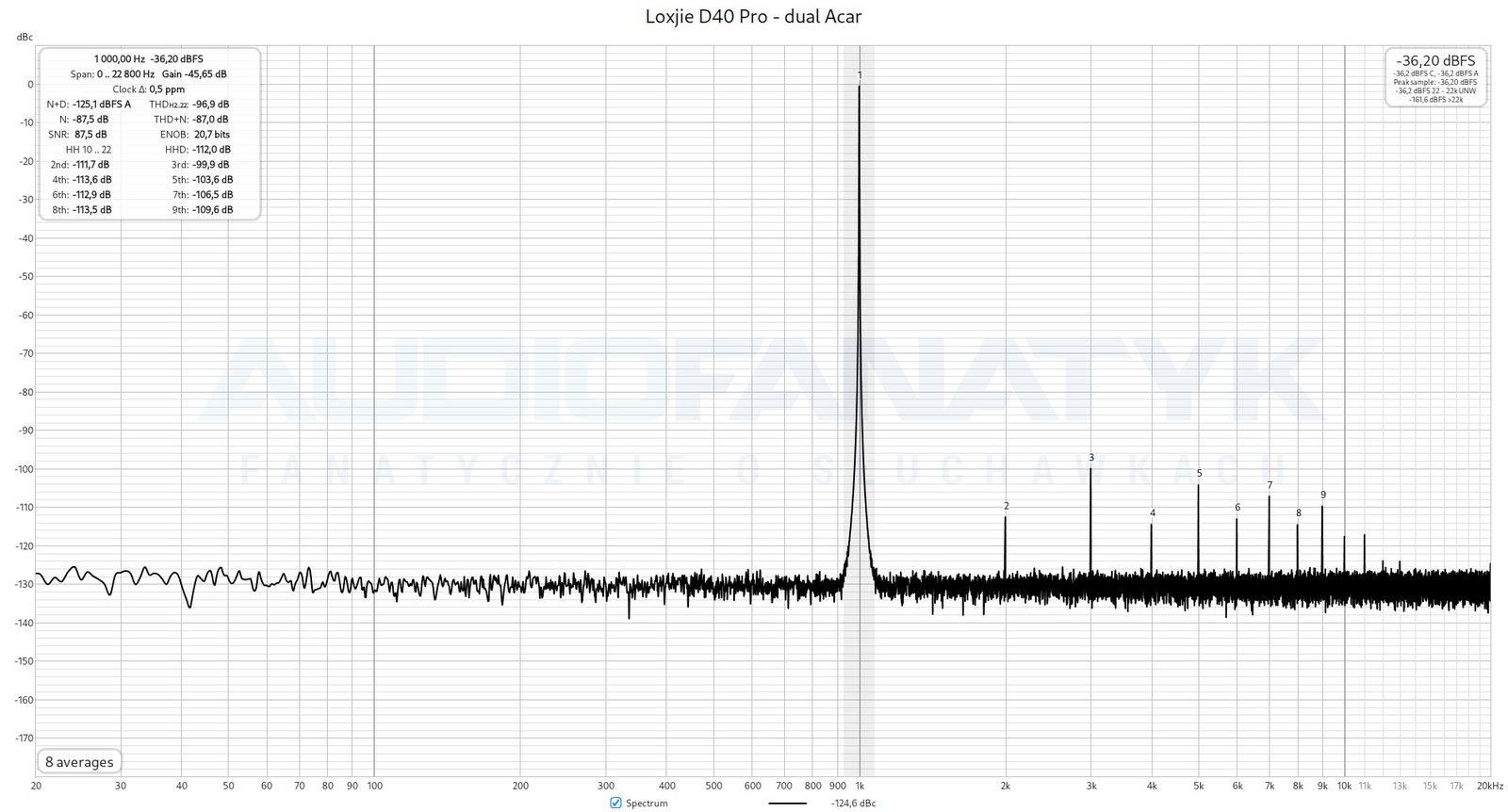 Niestety THD+N dla Loxjie D40 Pro pozostało bez zmian (-87,0 dB).