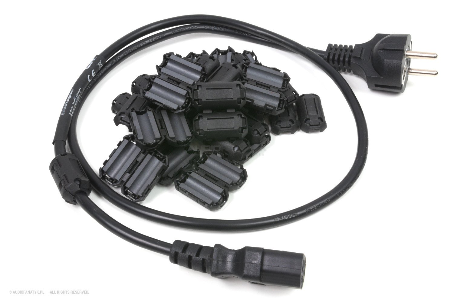 Można też pokusić się o gotowe kable z takimi kapsułami ferrytowymi. W swoim systemie zastosowałem trzy takie kable – dwa do M-Audio i jeden do PC. Reszta to kable z dołożonymi kapsułami blisko wtyków IEC.