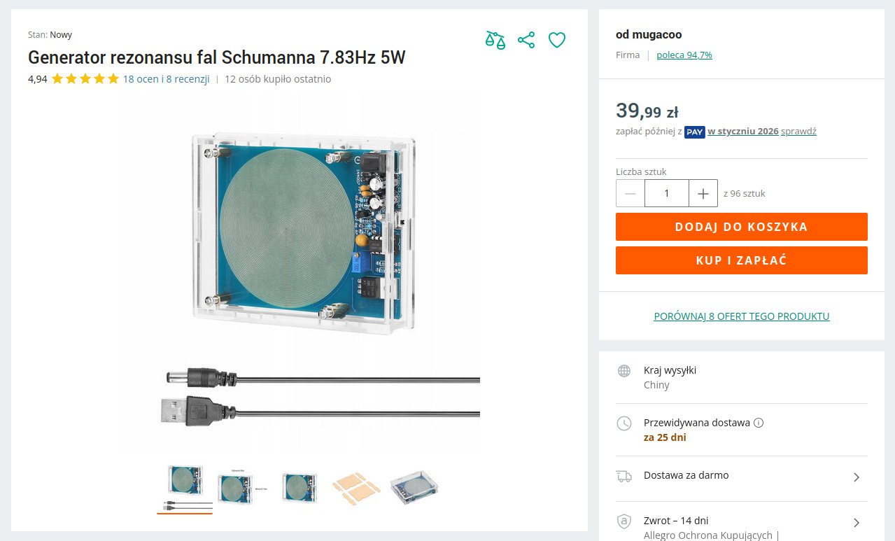 Rezonator Shumanna – jeśli kogoś piecze ~40 zł w portfelu, może zakupić taki generator na Allegro.
