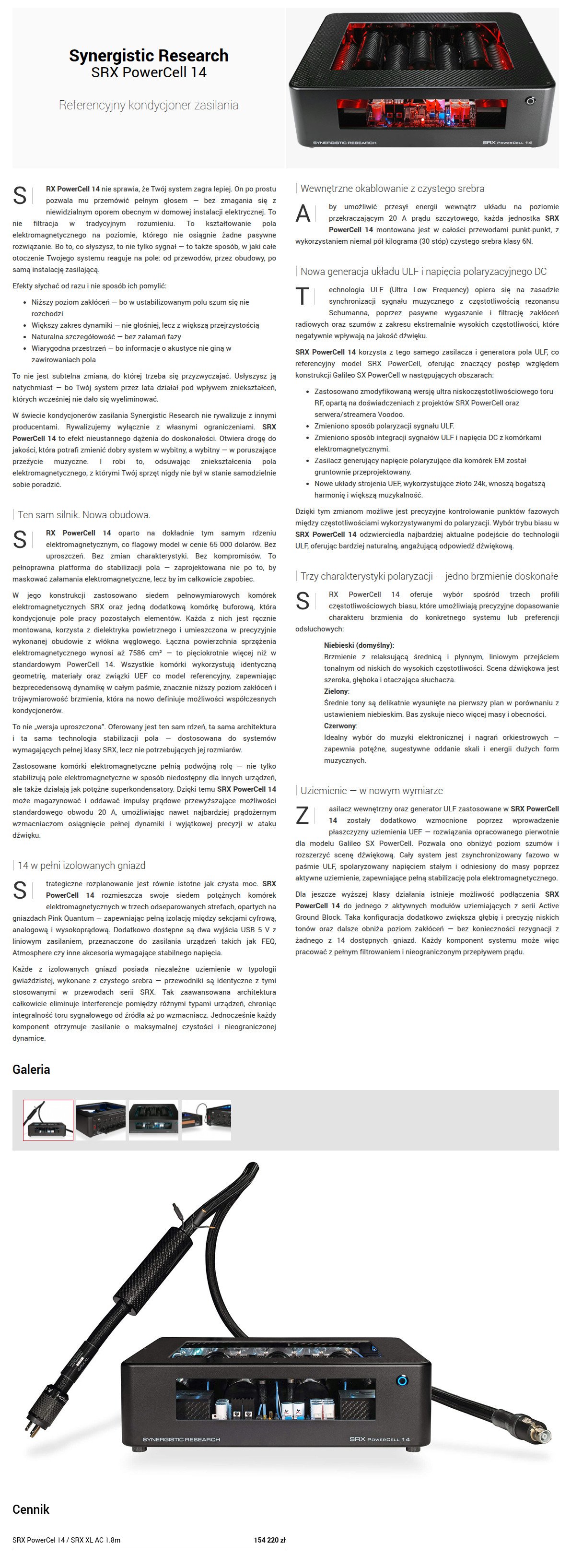 Z opisu produktu wynika, że jest to kondycjoner klasy ultra hi-end z 14 gniazdami zasilającymi za dokładnie 154 220 zł (poniżej zrzut ekranu), cechujący się m.in.: