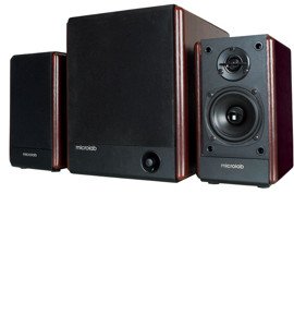 Opis: Kolejna mocna pozycja 2.1, tym razem ponownie od Microlaba. Generalnie jest to ten sam model co Modecom MC-2110 i poza logiem producenta niczym się nie różnią. Głośniki te to mocna alternatywa dla innych tanich zestawów 2.1, na ogół powalająca je na kolana jakością dźwięku oraz współczynnikiem ceny do możliwości. Dobra jakość dźwięku spokojnie kwalifikująca je do słuchania muzyki w tym systemie. Elektronika układu wzmacniającego również jest tu chłodzona dużym radiatorem, dzięki czemu nie są im straszne nawet bardzo długie okresy pracy w dni letnie. Same głośniki można podłączyć do sprzętu źródłowego za pomocą normalnych kabli RCA, jak również wyprowadzić z nich sygnał dźwiękowy tą samą drogą. Uwagę wizualną przykuwa duży subwoofer typu front-firing, co może być kluczowe dla osób z problemami akustycznymi w pomieszczeniu odsłuchowym.