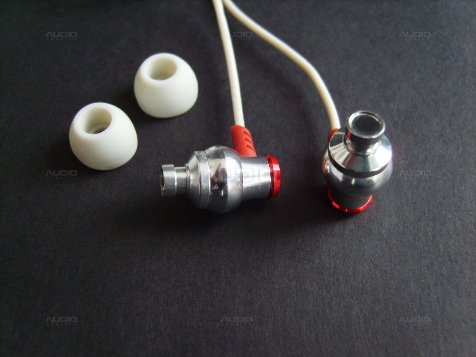 Wykonane są z lekkiego aluminium, z jednej strony malowanego na czerwono z logiem Brainwavz. Korpusy są konstrukcji całkowicie zamkniętej i rozmiarem dosyć dobrze dopasowanym do większości uszu, przez co stają się bardzo wygodnym i dosyć dobrze izolującym kompanem. Mogłyby być moim zdaniem idealne, gdyby jednak kabel wychodzi nieco dalej, a sam korpus był dłuższy, gdyż w moim przypadku umożliwiałoby to bezproblemową aplikację, a tak trochę jednak trzeba się było z nimi każdorazowo namęczyć przy tej czynności. Oznaczenie kanałów również mogłoby być lepsze.